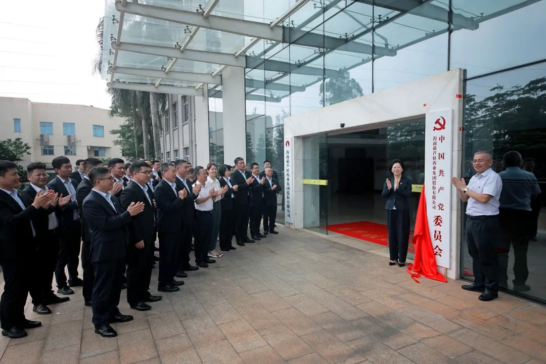 海口市高新区两新组织党委副书记傅爱萍宣读了《中共海口国家高新区非公有制经济组织和社会组织委员会关于同意成立中国共产党海南玩彩网·药业集团股份有限公司委员会的批复》。
